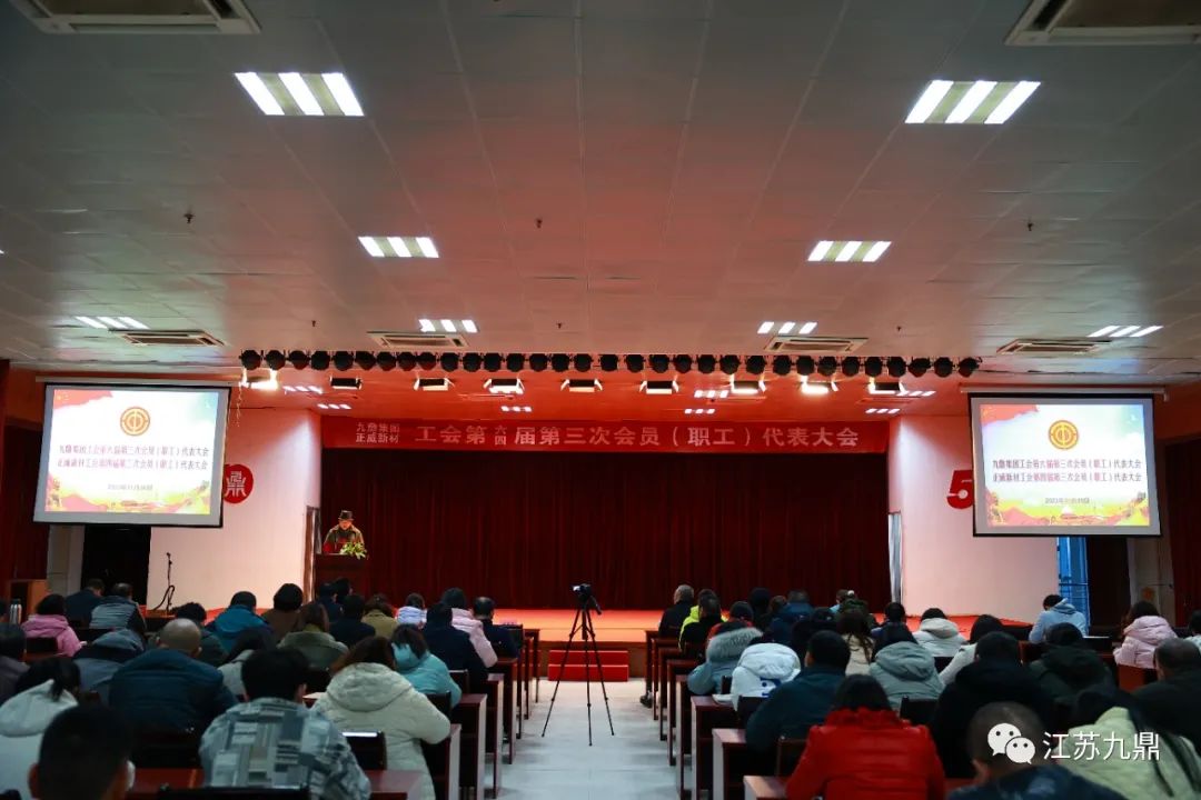 1130日下午,九鼎集團工會第六屆第三次會員(職工)代表大會暨正威新材工會第四屆第三次會員(職工)代表大會在六號樓三樓大會議室隆重召開。來自公司各個崗位的172名職工代表參加了會議。會議由黨委委員、工會委員顧振華主持。